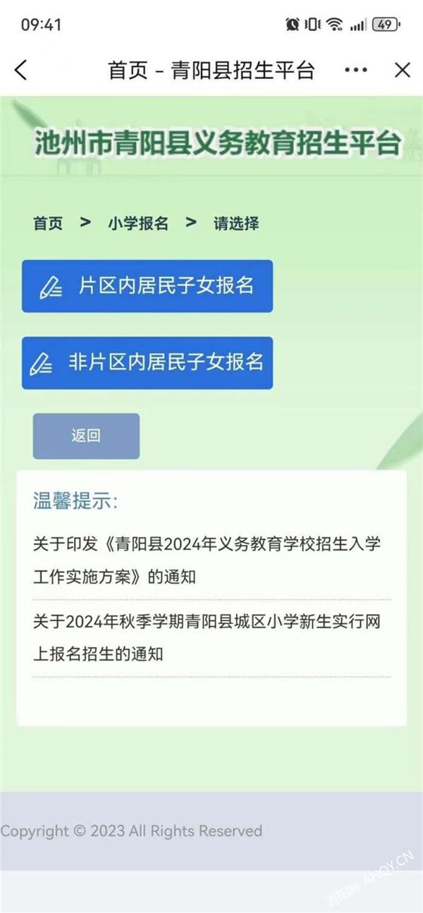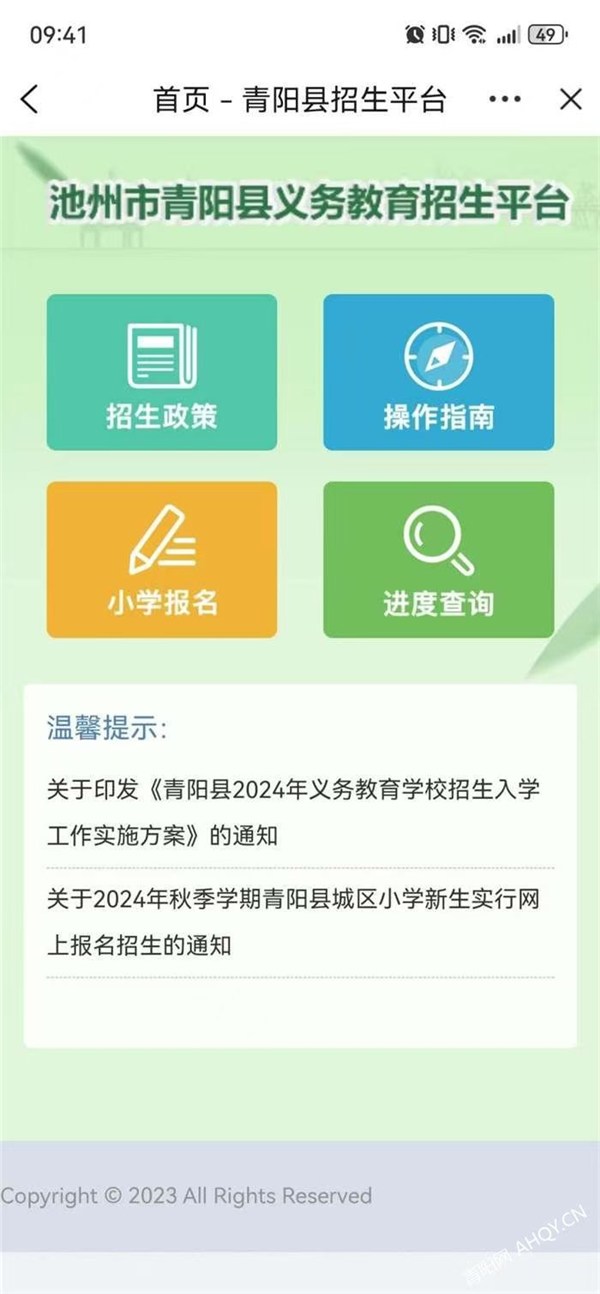 2024年秋季学期,青阳县城区小学新生入学实行线上和线下结合报名。