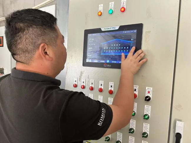 在位于乔木乡的智慧笼养蛋鸭项目现场,传统养殖场景被彻底颠覆。鸭舍入口处的大屏,实时显示并调控着温度、通风、光照等各项参数,如同整个空间的“智慧大脑”。