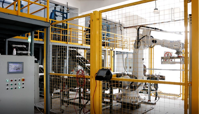 图为安徽宝镁轻合金有限公司压铸车间里,机械臂正在生产镁合金板。通讯员 青宣 摄