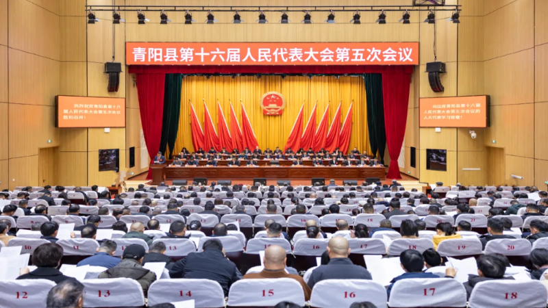 1月12日上午,青阳县第十六届人民代表大会第五次会议在县职教中心隆重开幕。来自全县各行各业、各条战线的县人大代表,肩负着全县人民的期盼和重托,满怀豪情齐聚一堂,庄严履行宪法和法律赋予的神圣职责。