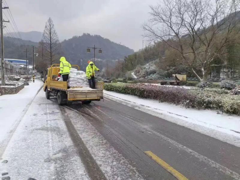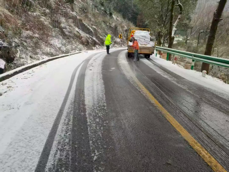 “在寒潮来临时,我分中心立即启动应急预案,对重点路段进行机械化铲雪后安排养护人员进行融雪剂撒布,确保白天全线道路积雪全部铲除,夜间安排值班值守防止夜间路面上冻,重点桥梁及上下坡路段每两小时巡查一遍,在夜间也撒布融雪剂,确保道路安全畅通。”池州市公路管理服务青阳分中心养护负责人杨继勤介绍道。
