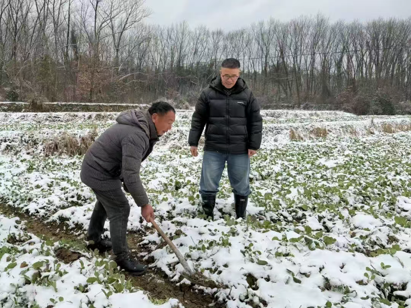 眼下正值油菜越冬关键期,新河镇农技人员深入田间地头,指导种植大户开展清沟沥水、培土护根等防寒作业。为应对寒潮,当地早谋划、早部署,分类施策,制定详细的技术指导方案,提供“一对一” 指导,通过“科技+农艺”的组合拳,为油菜根系筑起了坚实的“保温层”。新河镇十里岗村种粮大户胡克富告诉记者:“镇农技人员亲自上门指导,提醒我在雨雪冰冻天气,注意追肥清沟沥水,提高油菜抗冻能力。有了他们的指导,我心里踏实多了,今年的油菜肯定能安全越冬。”