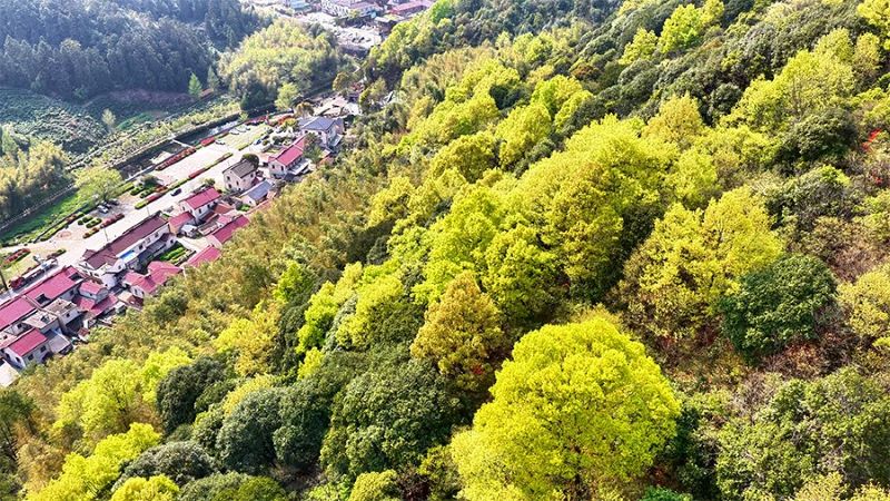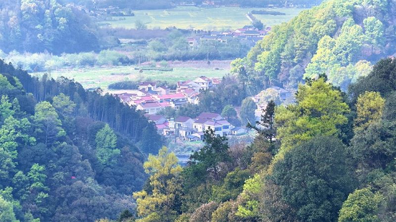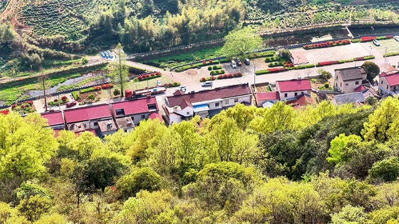 近日,安徽省池州市青阳县朱备镇山色秀丽,春景如画。青山与民居同框相映,构成一幅美不胜收的春日生态画卷。