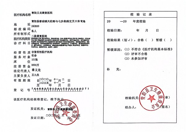 一、机构名称 青阳义龙康复医院