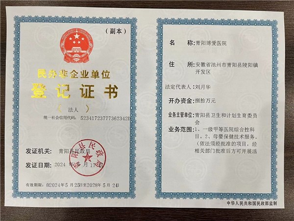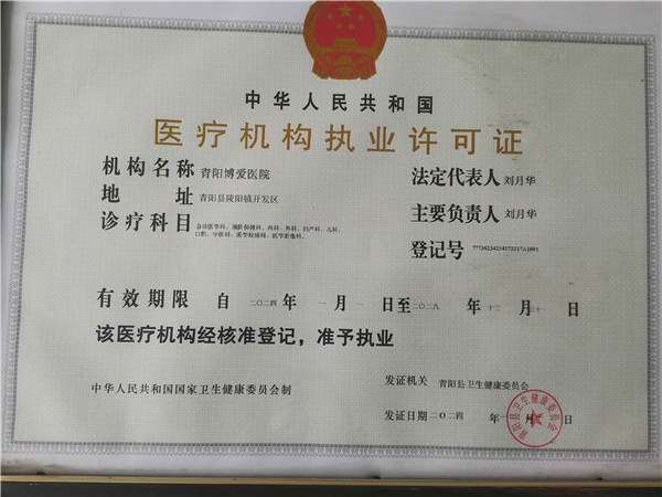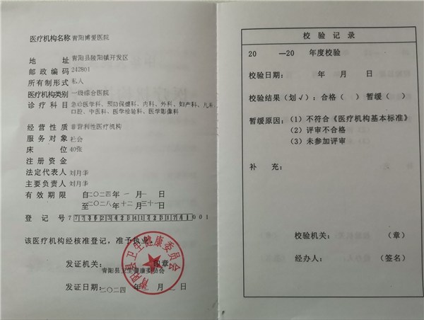 一、机构名称:青阳博爱医院