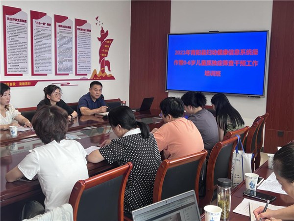 为规范实施全县0~6岁儿童孤独症筛查干预服务工作,2023年7月21日在青阳县妇计中心举办了全县妇幼健康信息系统操作暨0-6岁儿童孤独症筛查干预工作培训班。县妇计中心主任及妇幼科工作人员、全县11个乡镇卫生院的妇儿保医生以及县级助产机构的相关工作人员共计35人参加了培训会议。
