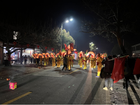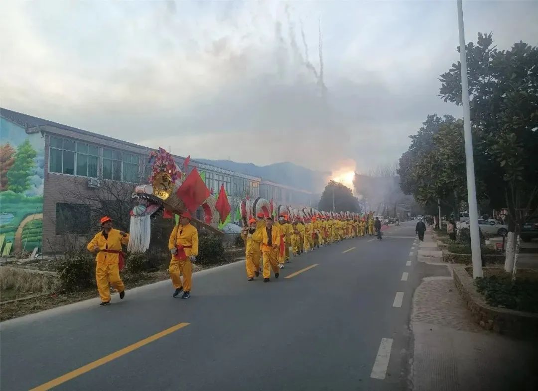 飞舞的龙灯伴着锣鼓、唢呐声和人们的欢呼声时而腾起、时而俯冲,蜿蜒翻腾,让人目不暇接。龙灯所到之处,村民无不争相迎接、簇拥相随,场面热闹非凡。“我从福建回来,不仅吃到了家乡的年味,更近距离看到了龙灯,相信今年一定会龙行大运。”务工返乡的村民张某对新年充满了信心与期待。