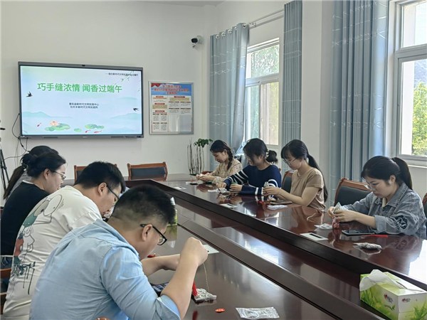 传习俗,巧手制香囊。6月3日杜村乡新时代文明实践所开展“巧手缝浓情闻香过端午”活动。志愿者先介绍了制作香囊的由来、寓意、制作及佩戴技巧等,让大家对香囊文化初步了解。接着,大家开始亲手制作香囊,感受传统节日的浓厚氛围。志愿者拿出事先准备好的艾草、布料、针线等材料,大家发挥动手能力,一个个精美别致的香囊就做好了。在大家的巧手下,个个形似粽子、带着美好寓意的香囊展现在眼前,散发着淡淡的清香,大家一边欣赏,一边感受着传统手工非遗文化的魅力。