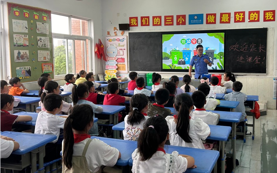 6月6日,青阳县城市管理局“ 小手牵大手 垃圾分类进校园”活动在青阳县第三小学举行。县城管局垃圾分类宣讲员以“垃圾分类我践行,童心同行向未来”为主题的垃圾分类宣传小课堂,引导小朋友们积极参与到垃圾分类行动中,培养垃圾分类环保意识。