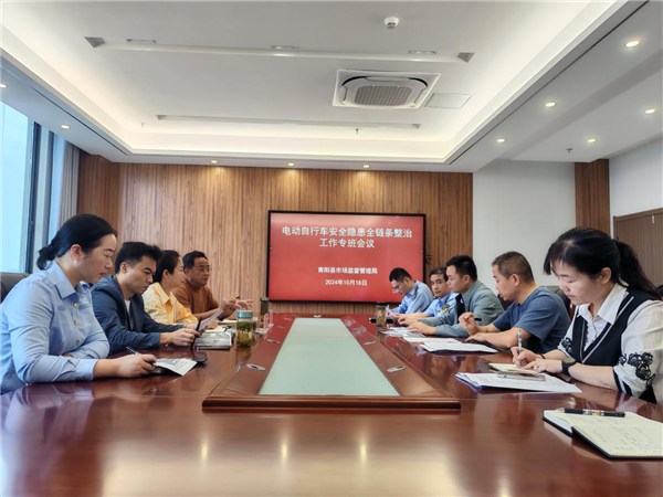 10月18日,县市场监管部门、公安部门召开电动自行车安全隐患全链条整治工作联席会议,对接电动自行车登记上牌事宜,共同推进电动自行车安全隐患全链条整治工作。县市场监管局分管同志、执法大队负责同志、县公安车管所负责同志出席了会议。