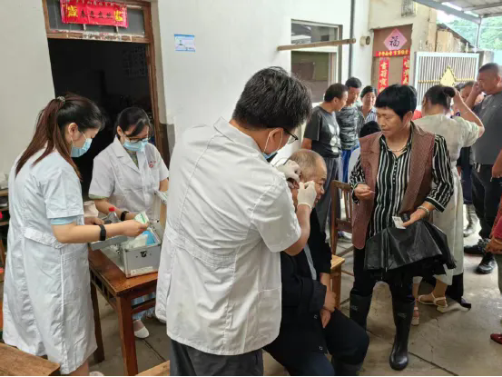 筛查前,洛家潭村提前通过村广播、电话、微信群、入户通知等方式告知村民检测时间与地点信息。特别采用“每日一站、多点覆盖”模式,在村内设立5个临时检测点,开展为期5天的血吸虫病免费筛查行动,既缩短村民往返距离,又延长筛查周期,确保“不漏一户、不落一人”。