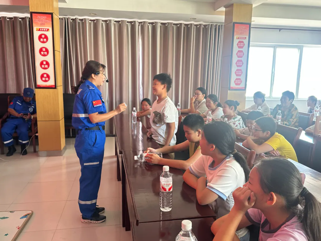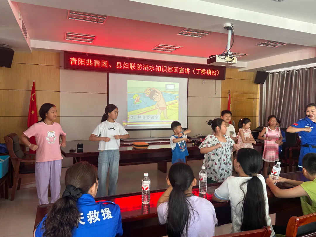 为增强青少年防溺水安全意识,普及自救互救技能,8月8日上午,丁桥镇团委联合青阳县蓝天救援队,开展了一场干货满满的防溺水安全宣讲活动。活动通过“知识讲解+情景模拟+互动体验”的形式,为孩子和家长们带来了一场生动的安全教育课,筑牢生命安全防线。