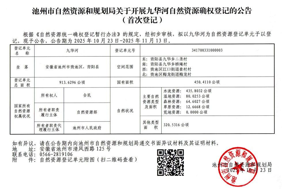 关于开展九华河自然资源确权登记的公告(首次登记)