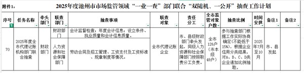 2025年度池州市市场监管领域“一业一查”部门联合“双随机、一公开”抽查工作计划