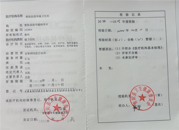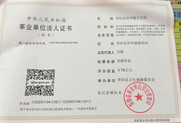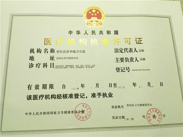 一、机构名称 青阳县酉华镇卫生院
