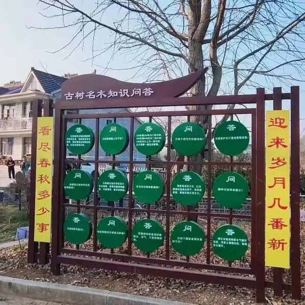 公园建设不止于保护,更在于让古树文化“活起来”。依托 “一树一景、一树一故事”的创作理念,公园深度挖掘青檀造纸文化、地方历史传说,打造了集科普教育、文化体验、休闲游憩于一体的多元空间。徽派风格的主题矮墙庄重大气,成为网红打卡点;7幅古树普法漫画生动诠释《古树名木保护条例》,将严禁硬化铺装、盗伐刻划等规定可视化;科普互动器与知识问答栏,以趣味形式普及古树保护知识,让游客在游览中了解古树级别划分、保护范围等专业内容。
