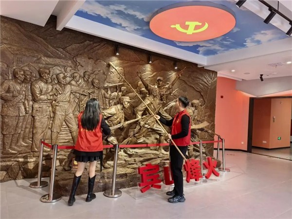 活动现场,志愿者们身着统一的志愿马甲,手持抹布、扫帚等清洁工具,分工协作、有条不紊地对纪念馆内的展陈设施、雕塑浮雕、地面门窗等进行了全面细致的清扫擦拭。大家仔细擦拭着革命先辈的铜像,认真清理着展柜角落的灰尘,不放过任何一处细节,用双手为纪念馆营造出干净整洁的参观环境,以实际行动守护红色阵地。