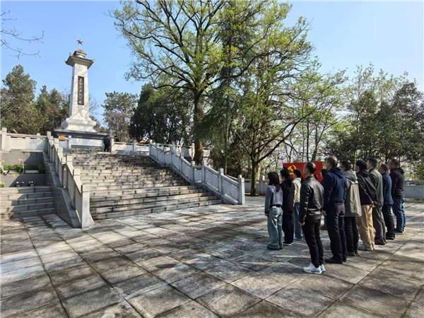 在庄严肃穆的革命烈士纪念碑前,全体人员整齐列队、肃立默哀,向革命先烈致以崇高敬意。党员代表缓步上前,向革命烈士敬献花篮,整理缎带,寄托深切哀思。随后,全体党员面向鲜红党旗,高举右拳,庄严宣誓,重温入党誓词,以铿锵誓言坚定理想信念、恪守对党忠诚。