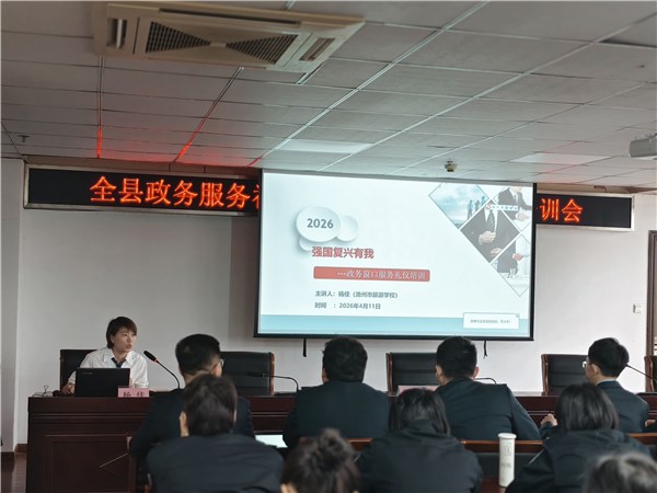 为进一步加强窗口作风纪律建设,增强工作人员服务意识,提升政务服务水平,4月11日,县政务服务中心组织召开全县政务服务礼仪规范暨作风效能建设培训会。会议邀请池州市旅游学校杨佳老师和市数据资源管理局作风效能负责人樊杰现场授课,县政务服务中心中心各股室、窗口工作人员共100余人参加培训。