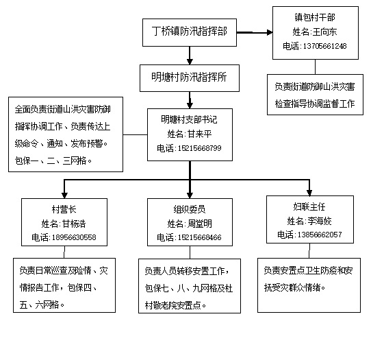 丁桥镇成立防汛指挥部,承担山洪灾害防御组织指挥工作(详见下图)。